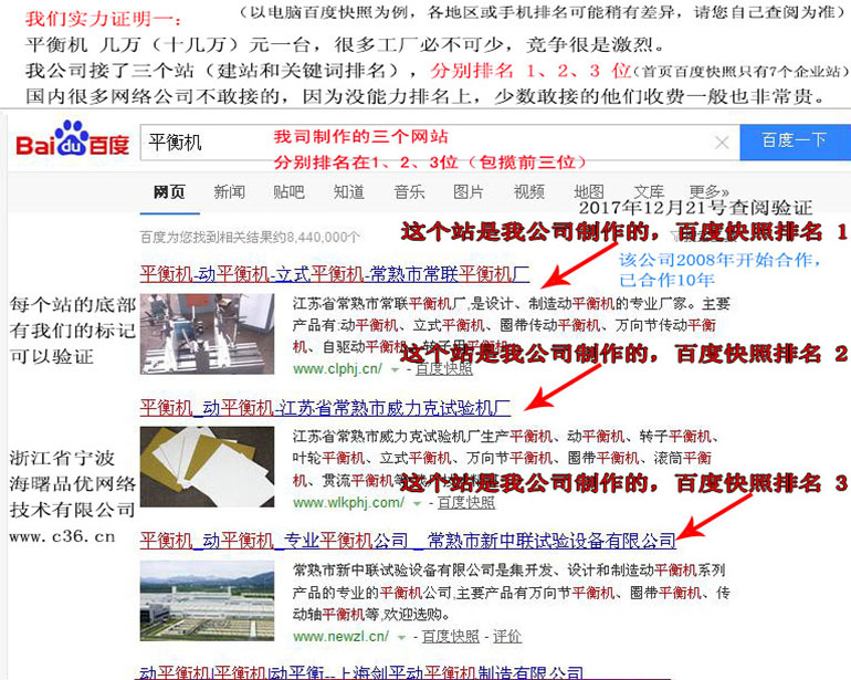 平衡機 : 2018-05-23上線 2018-06-08排名第5頁 2018-07-01排名第30名 2018-08-15排名第11名 2018-08-26排名第7名 (注:平衡機一臺需要幾萬到10多萬元, 是難排名的關(guān)鍵詞,百度重點關(guān)照,因百度推廣的話,大概要60元一點擊)